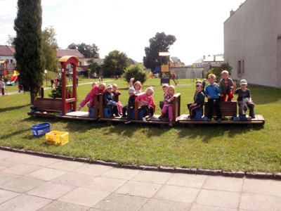 K pobytu venku využíváme především naši rozlehlou zahradu. Vybavení zahrady slouží k tělovýchovným aktivitám, k tvořivým a námětovým hrám, k pozorování přírody. Vycházky do okolí bývají spojené s tématem dne. Umožňují poznávat naše město, jeho okolí. Pobyt v přírodě využíváme k počátkům ekologické výchovy. Děti se učí přírodu pozorovat, poznávat přírodní zákonitosti, chránit ji.